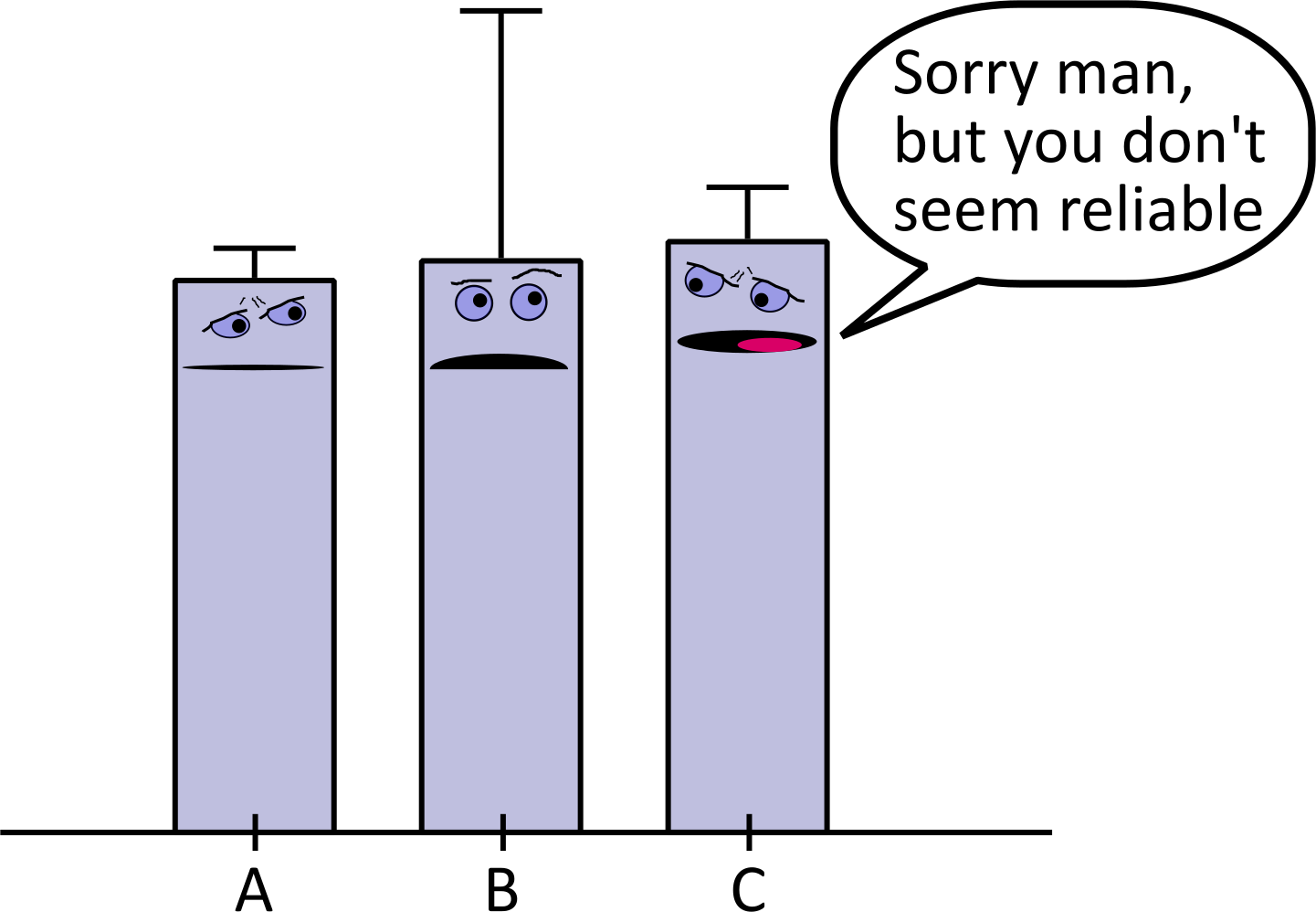 Die Daten in Ihrer Beobachtungsstudie weisen keine größeren Ausreißer auf uns Sie entscheiden sich für Mittelwert bzw. Standardabweichung als Ihr Lage- bzw. Streuungsmaß. Für eine erste Kommunikation mit den anderen Task Forces erstellen Sie folgende Abbildung:
