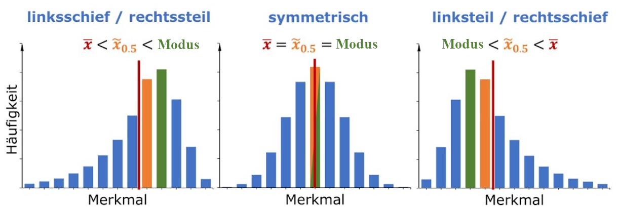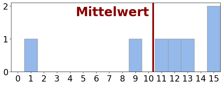| \(\mathbf{x}\) (z.B. Punktzahlen im Abi) | \(\bar{x}\) | Histogramm | Mittelwert sinnvoll? |