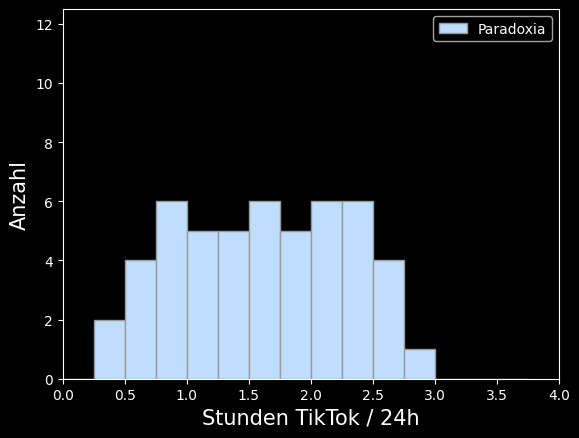 Hier ist das Histogramm der TikTok-Zeiten von Paradoxikern: